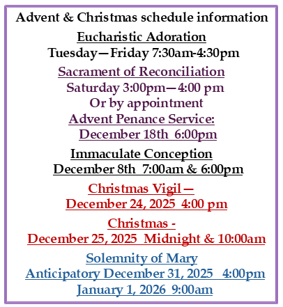 Daily Mass Schedule Sunday Mass Schedule Sacrament of Reconciliation Office Hours
